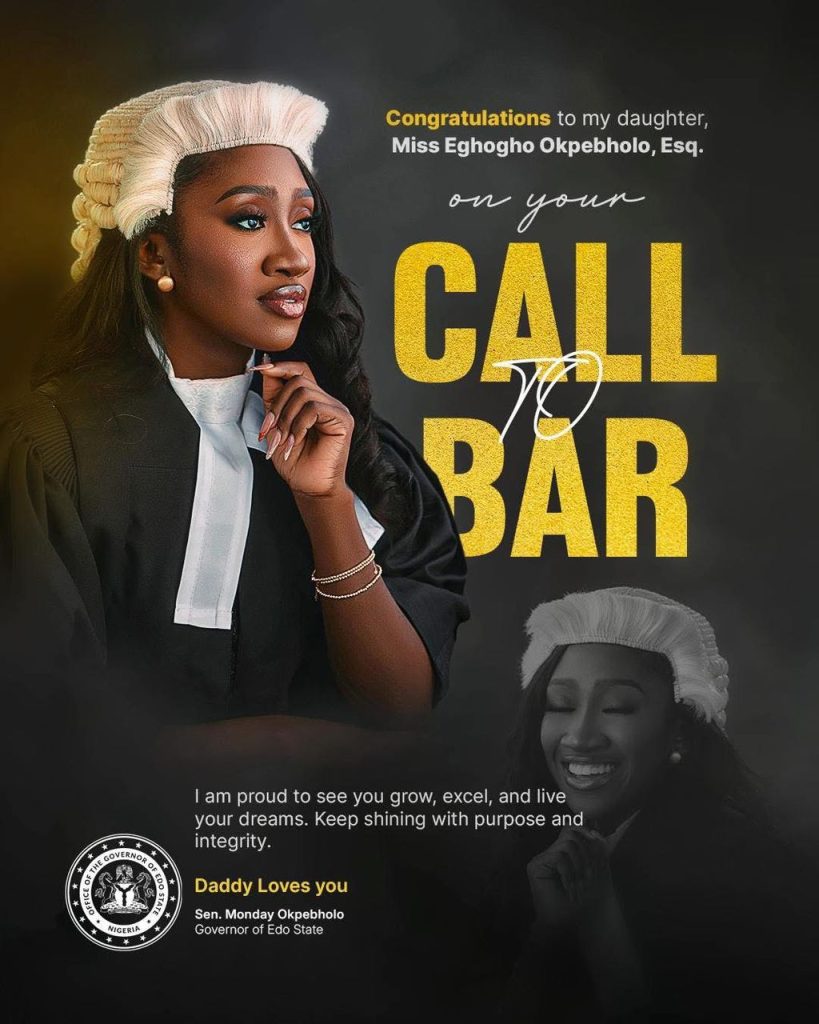 Today, I am filled with pride and gratitude as I witness my daughter, Eghogho Okpebholo, now Esq., officially called to the Nigerian Bar.