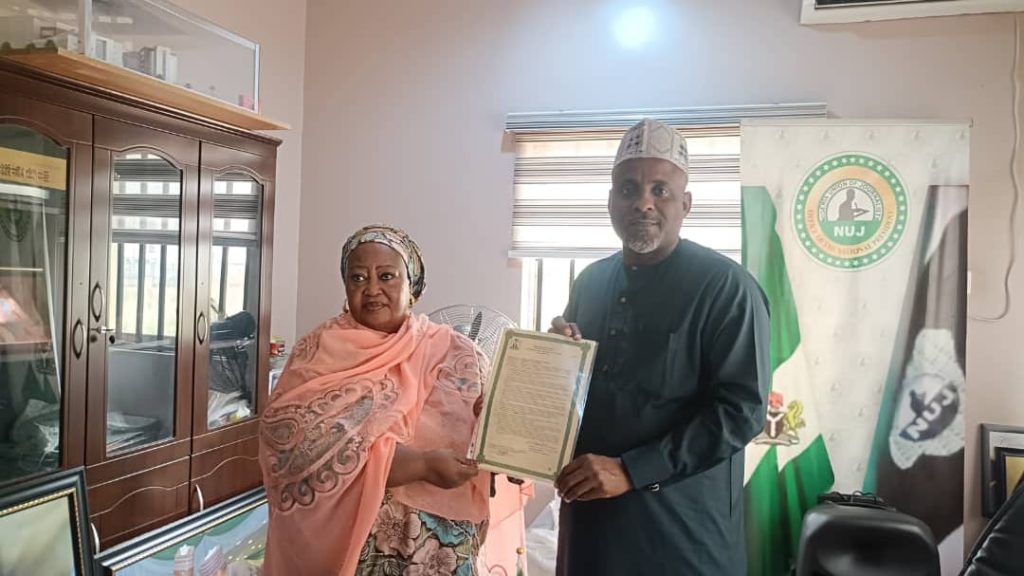 The National Chairperson of the Nigeria Association of Women Journalists (NAWOJ) Hajia Aishatu Ibrahim, has formally presented the Association’s Certificate of Occupancy (C of O) to the President of the Nigeria Union of Journalists (NUJ), reaffirming NAWOJ’s strong ties with its parent body.