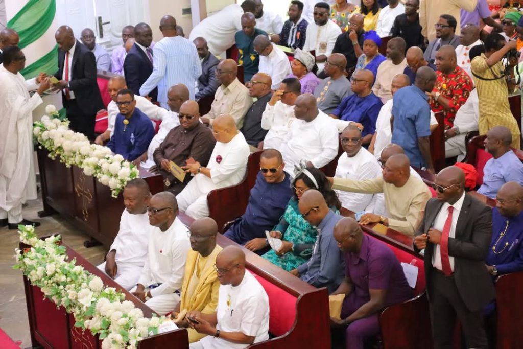 The service was graced by several dignitaries, including Edo State Governor, Monday Okpebholo; Area Council Chairmen; Chairman, Senate Committee on FCT Area Councils and Ancillary Matters, Senator David Jimkuta; and Speaker of the Rivers State House of Assembly, Hon. Martins Amaehule.